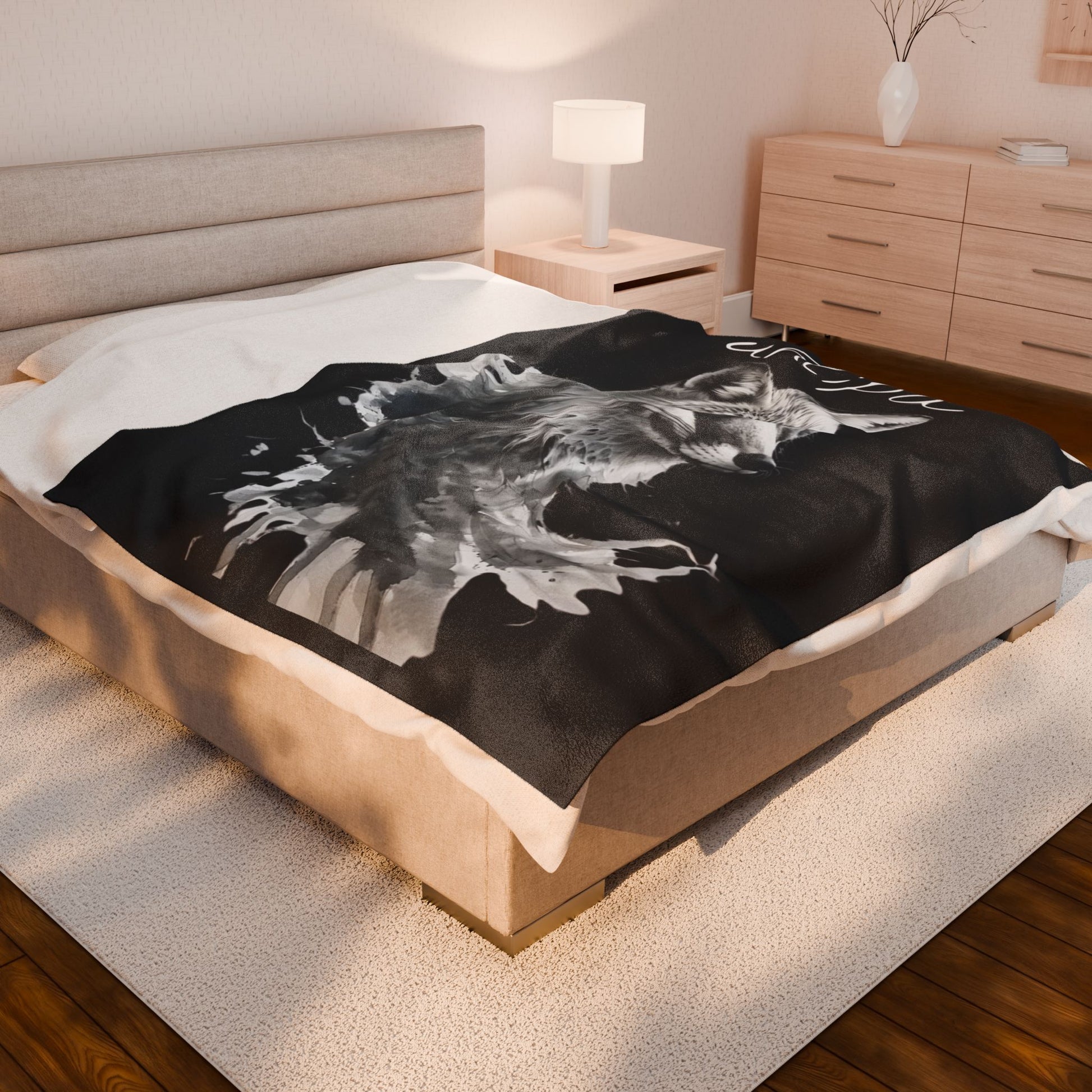 Stylish Velveteen Plush Blanket with Fox Design - Cozy Gift for Animal Lovers, Home Decor, Warm Throw, Perfect for Relaxing or Winter Nights